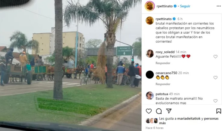 “Brutal manifestación en Corrientes: los caballos protestan por los neumáticos que los obligan a usar y tirar de los carros”, destacó.